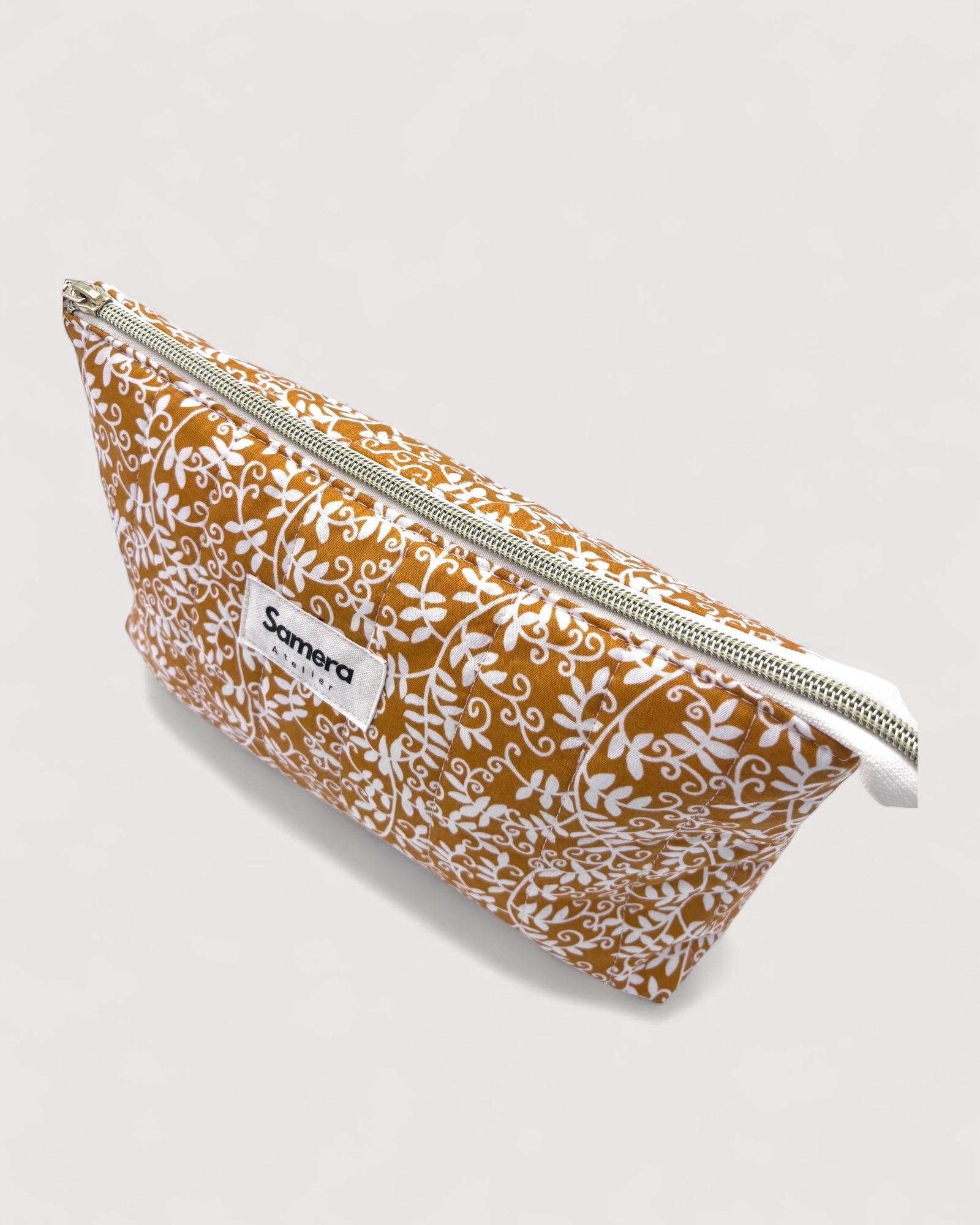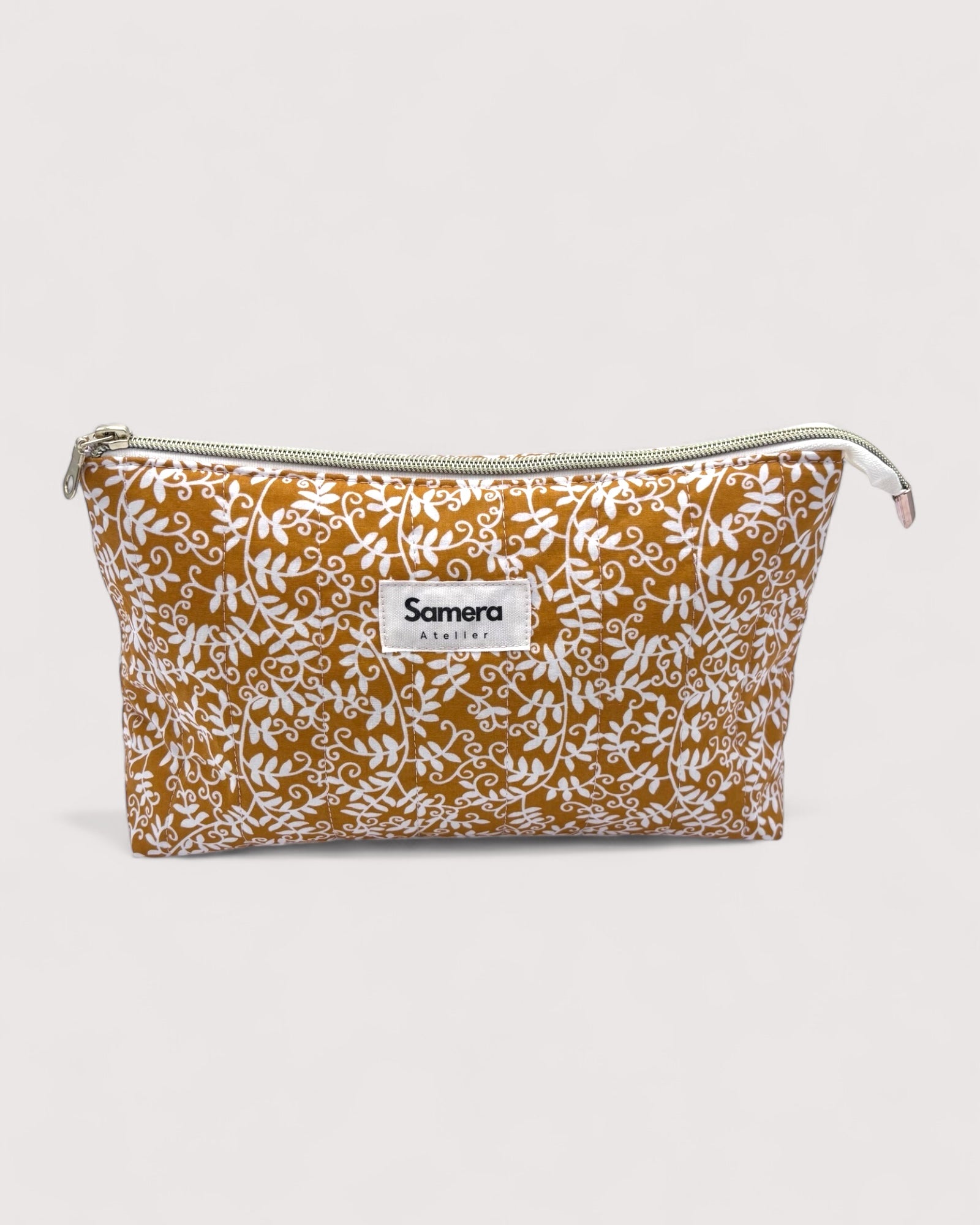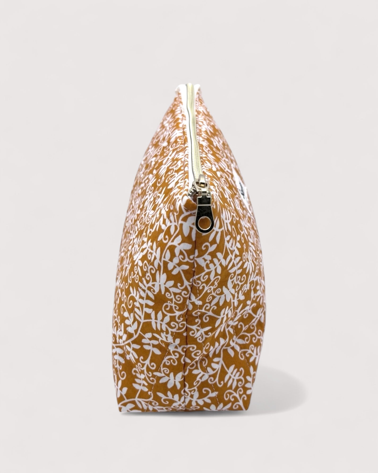 Floral Mustard Cotton Wash Bag - Toiletry Pouch
