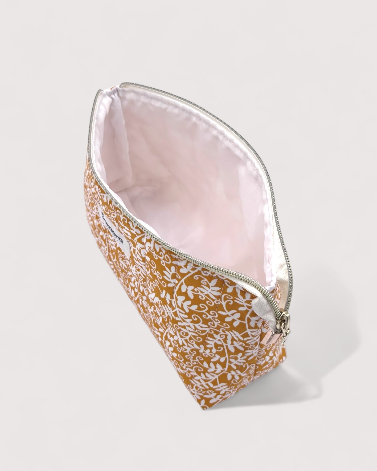 Our everyday quilted wash bag includes water resistant lining and gold zip. It's the perfect all rounder to fit your chunky palettes and your skincare. Its extra-long length and shallow design make this the perfect everyday makeup bag and easy to pop into your suitcase, tote bag or weekenders!
