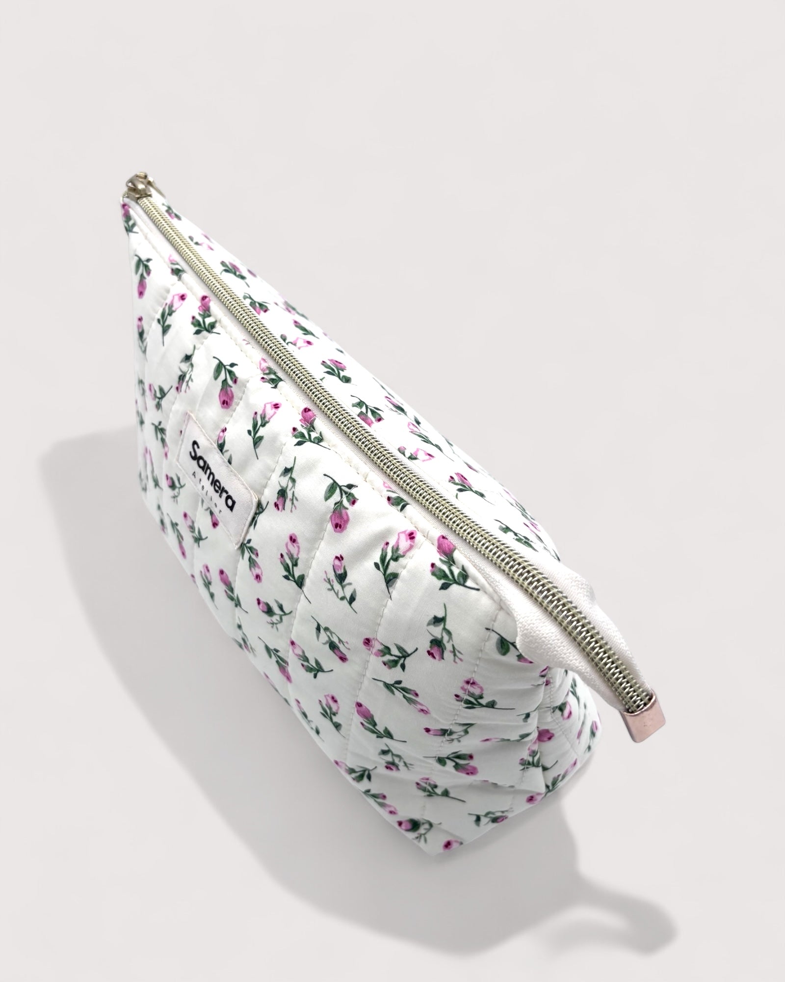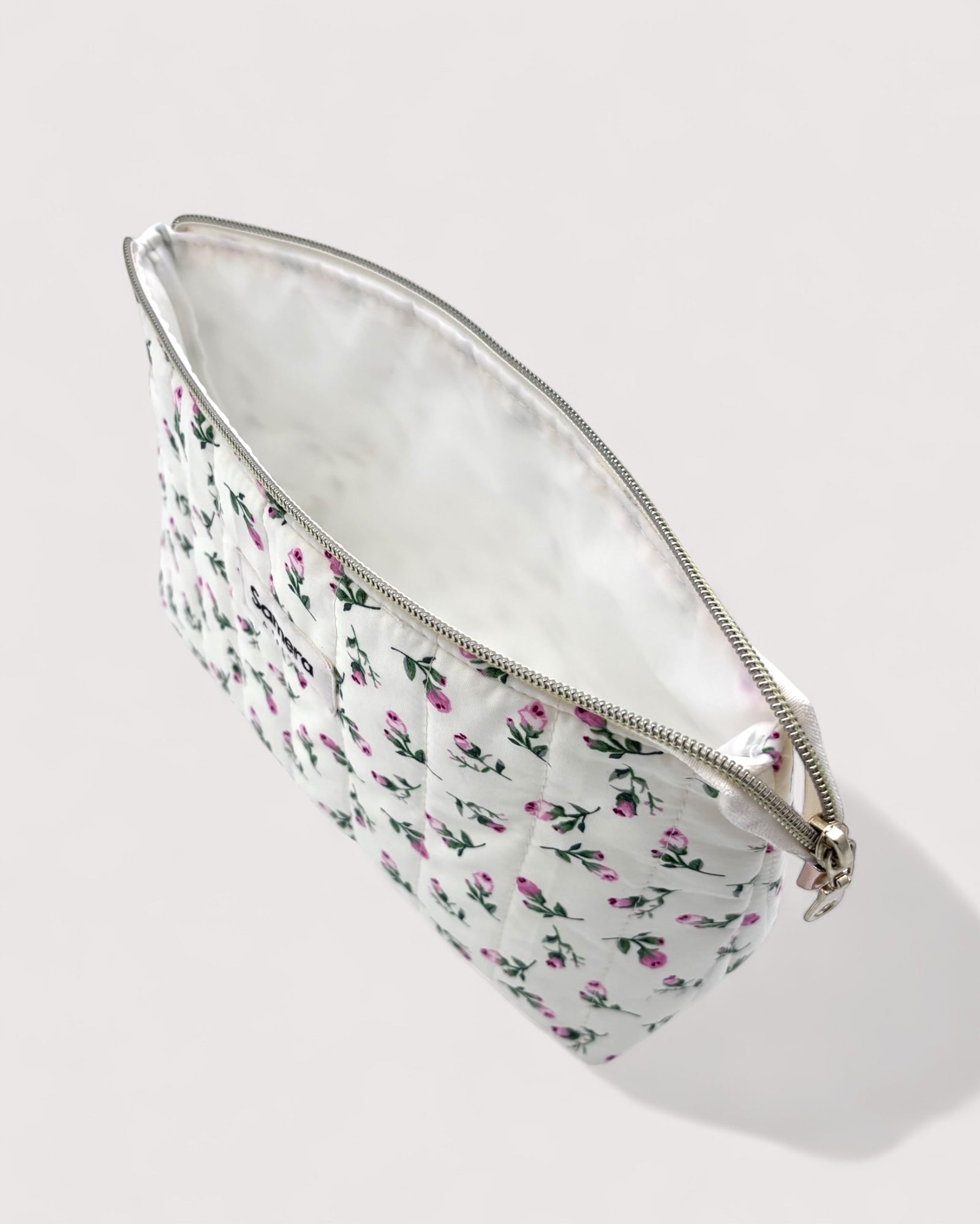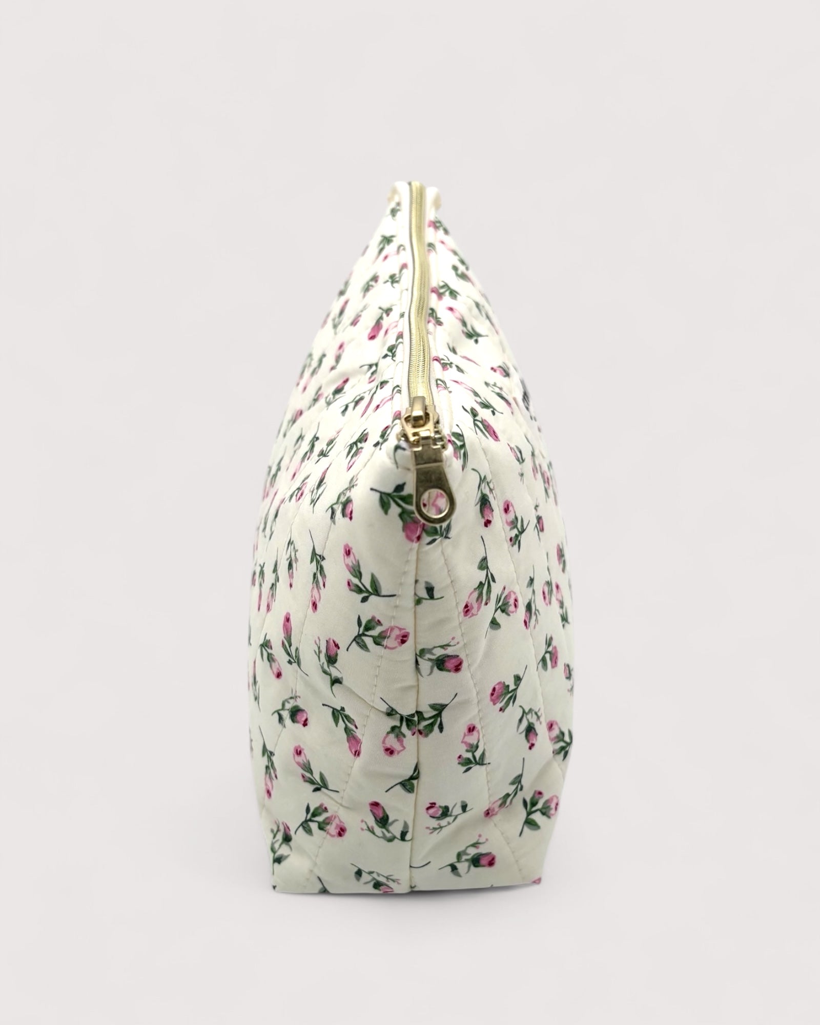 Our everyday quilted wash bag includes water resistant lining and gold zip. It's the perfect all rounder to fit your chunky palettes and your skincare. Its extra-long length and shallow design make this the perfect everyday makeup bag and easy to pop into your suitcase, tote bag or weekenders!